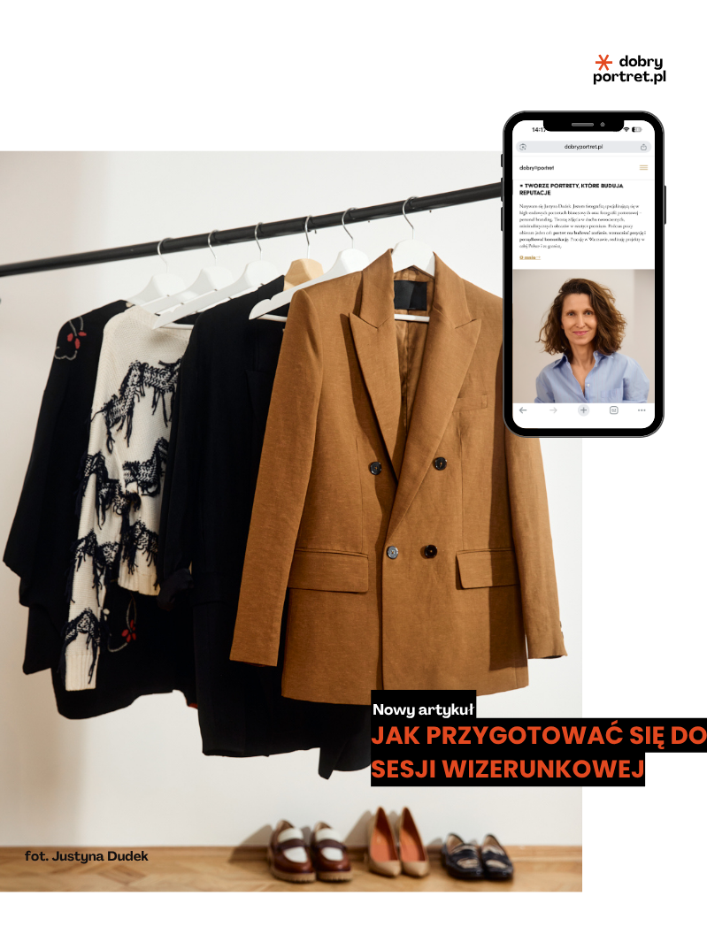 To jest jedna z jego najpiękniejszych cech. Nie trzeba w nim udawać bardziej profesjonalnej wersji siebie, bardziej komunikatywnej, bardziej pewnej, bardziej „gotowej”. Nie trzeba też szukać idealnej maski, która dobrze zagra w obiektywie. Portret osobisty dużo gorzej znosi grę niż sesja wizerunkowa, bo tam, gdzie liczy się wewnętrzna prawda obrazu, zbyt mocna stylizacja osobowości bardzo szybko zaczyna pękać.